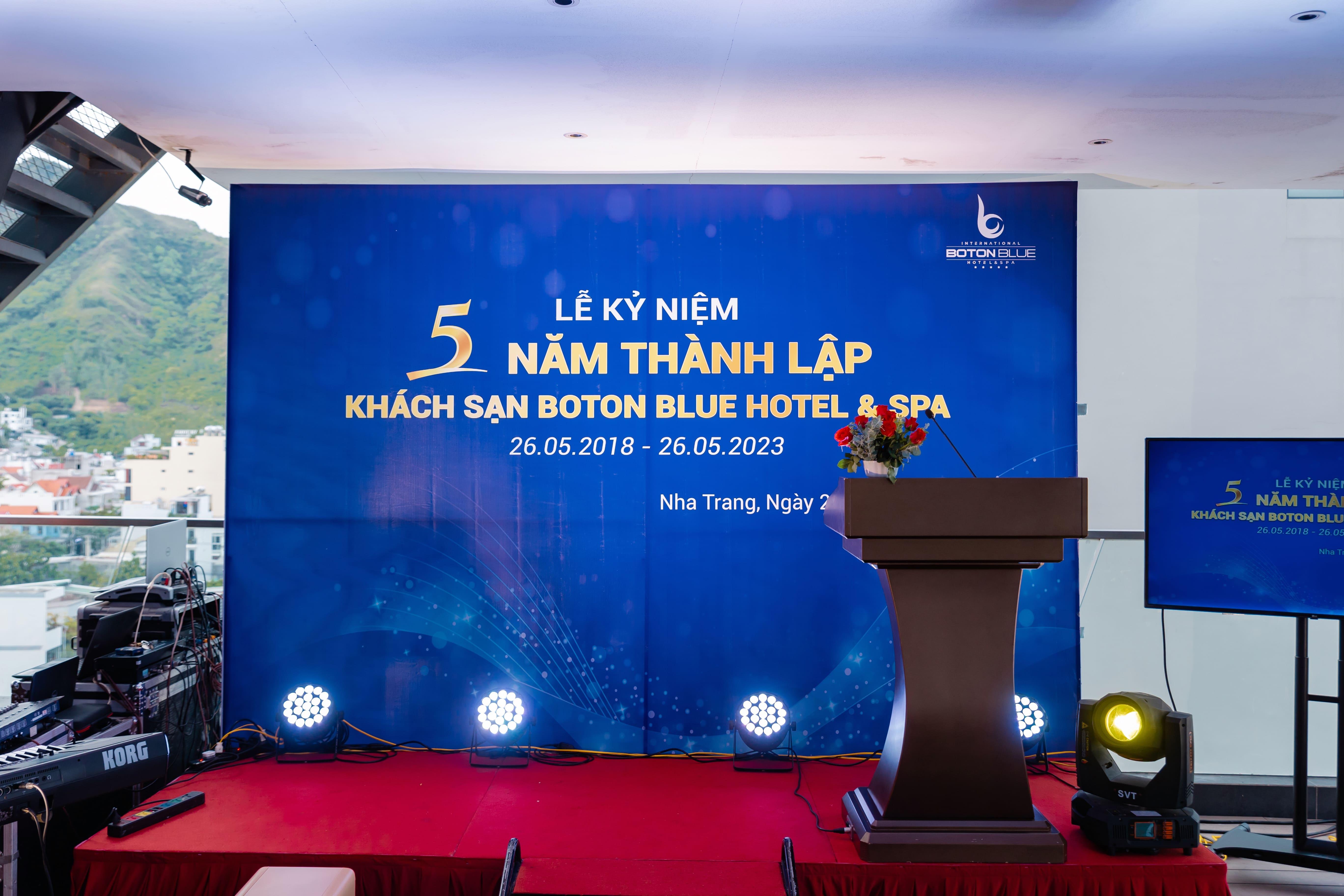 On May 26, 2023, Boton Blue Hotel & Spa solemnly celebrated the 5th anniversary of the hotel's establishment (May 26, 2018 – May 26, 2023). With the participation of the investor, valued customers, partners, and hotel staff, the ceremony was successfully held.